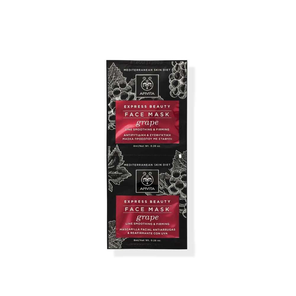 La APIVITA Express Beauty Face Mask Grape es una mascarilla facial de acción intensiva y efecto rejuvenecedor, formulada con extracto de uva, una fuente natural de antioxidantes que ayuda a proteger la piel frente a los radicales libres y a prevenir los signos prematuros del envejecimiento.