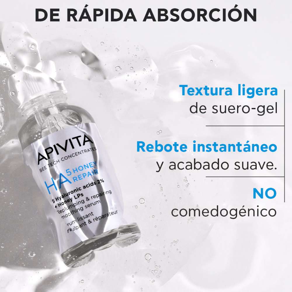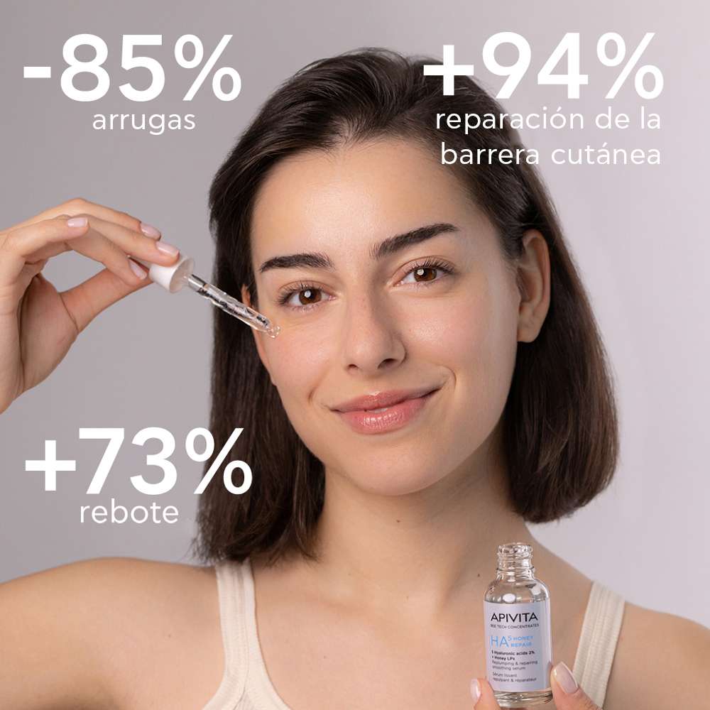 Sérum intensivo de hidratación y reparación formulado con cinco pesos moleculares de ácido hialurónico y miel encapsulada con Tecnología LPs, que actúa en distintas capas de la piel para proporcionar una hidratación profunda, duradera y eficaz.