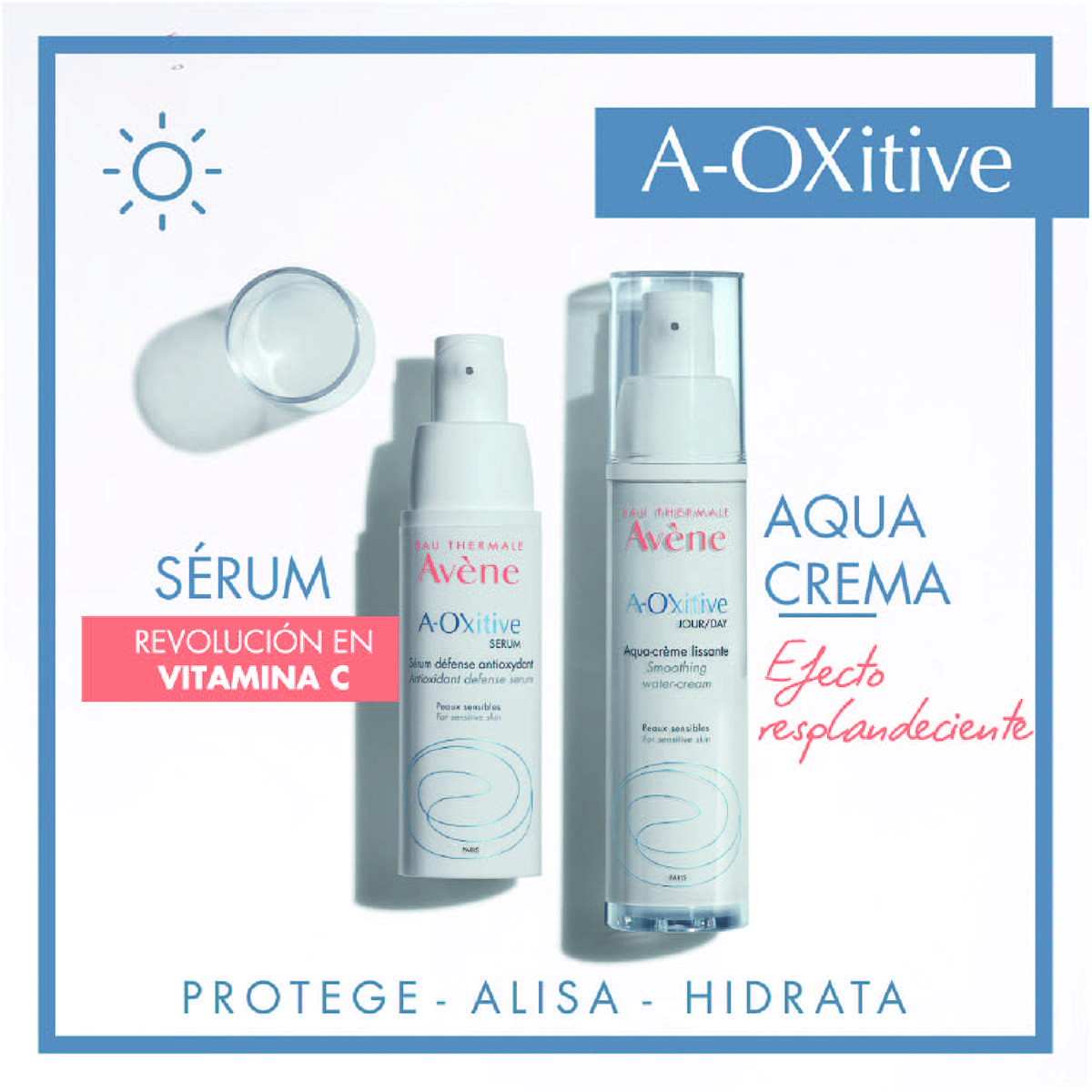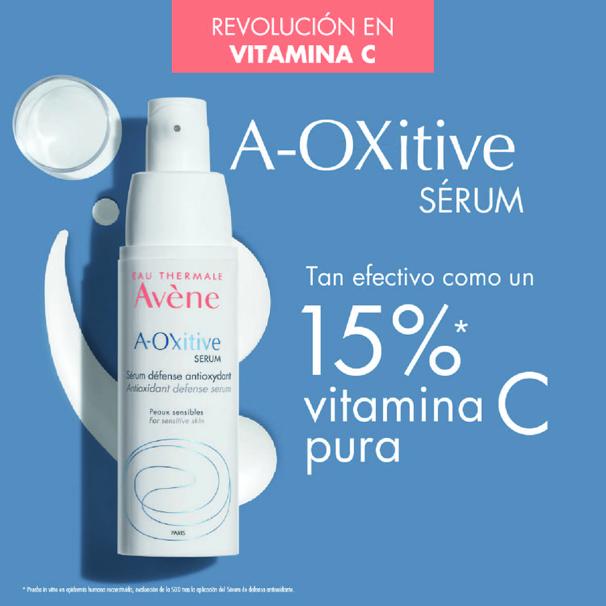 AVENE A Oxitive Suero Antioxidante es un potente sérum con acción anti-edad, que libera vitaminas C y E a lo largo del día. Corrige arrugas y líneas de expresión, protegiendo la piel y mejorando su tonalidad. La piel se ve más firme, luminosa y radiante.