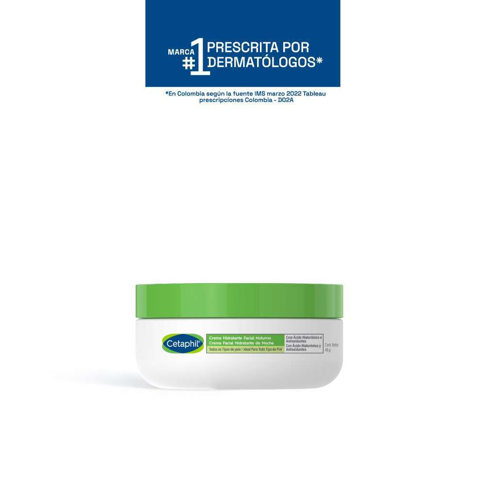 Crema Facial Hidratante de noche con ácido hialurónico, vitamina E, vitamina C y aceite de oliva, que ayuda a mantener una piel hidratada, nutrida y suave durante toda la noche. Suaviza y nutre la piel durante la noche dejando un aspecto suave y flexible. Fortalece la barrera de humedad natural de la piel para protegerla de la sequedad.