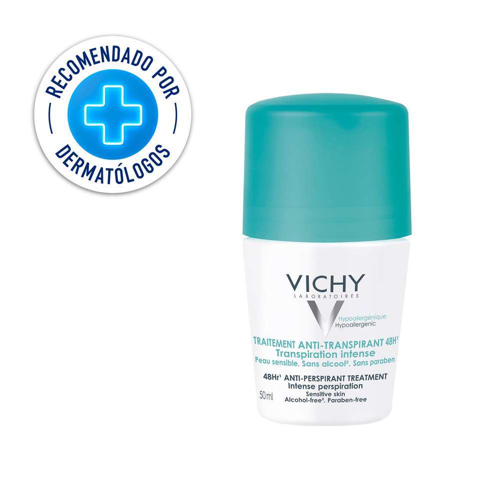Tratamiento anti-transpirante 48h Roll-on. Recomendado para hombres y mujeres que padecen una sudoración intensa y que busquen eficacia duradera sin causar molestias en la piel.