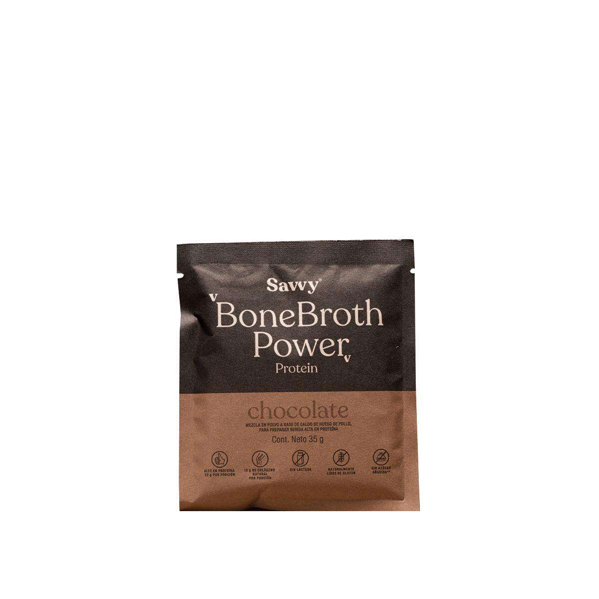 Incluye Bone borth power para complementar tu consumo de proteína y llévalo a todas partes en su práctica presentación en sachet.