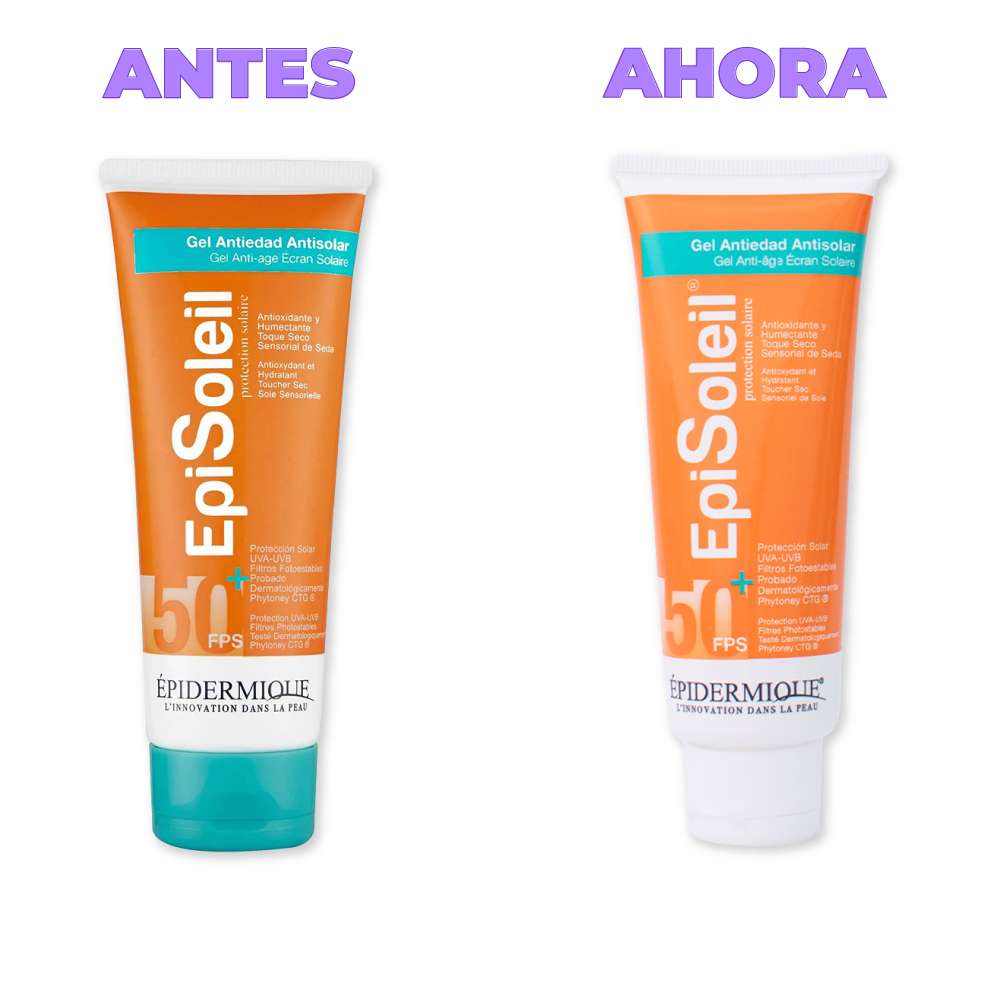 El EPIDERMIQUE Episoleil Gel Antiedad SPF 50+ (70 g) es un protector solar facial en textura gel de toque seco, ideal para uso diario. Su fórmula con filtros fotoestables brinda alta protección contra rayos UVA y UVB, ayudando a prevenir el envejecimiento prematuro de la piel.