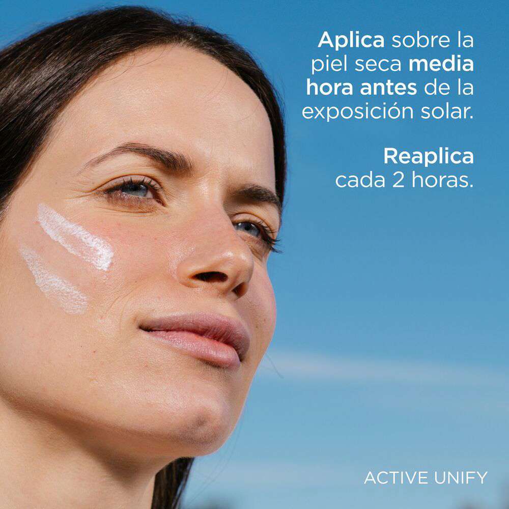 ISDIN Fotoultra 100 Active Unify 50+ es un protector solar facial sin color con acción unificadora que mejora el tono de la piel. Su fórmula ofrece triple acción para combatir tonos irregulares y una protección muy alta contra los rayos UVB/UVA, superando en dos veces el mínimo requerido para un SPF 50+. Ayuda a reducir y prevenir marcas en la piel causadas por la radiación solar.