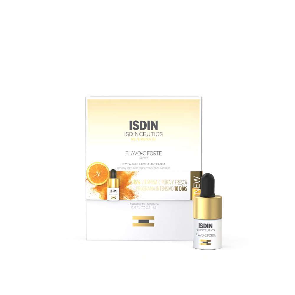 Potente sérum facial con un 15% de vitamina C pura y fresca. Flavo-C Forte se activa en el primer momento de uso para ayudar a mantener el colágeno, mejorar la firmeza de la piel y suavizar visiblemente las arrugas. Revela una piel radiante e iluminada, protegida de la polución e hidratada.
