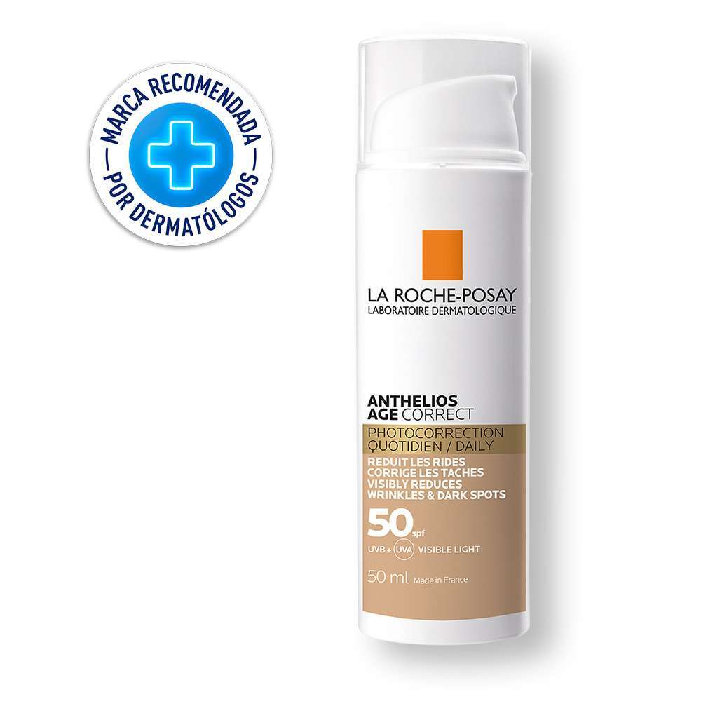LA ROCHE POSAY Anthelios Age Correct Gel Crema Color protección solar con color que protege la piel frente a los rayos UV y corrige visiblemente los signos del envejecimiento causados por la exposición solar diaria.