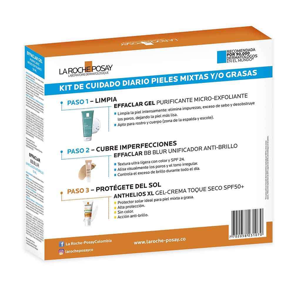 Paso 1 – Limpia con Effaclar Gel Purificante Micro-Exfoliante: Limpia la piel intensamente: elimina impurezas, exceso de sebo y desobstruye los poros.