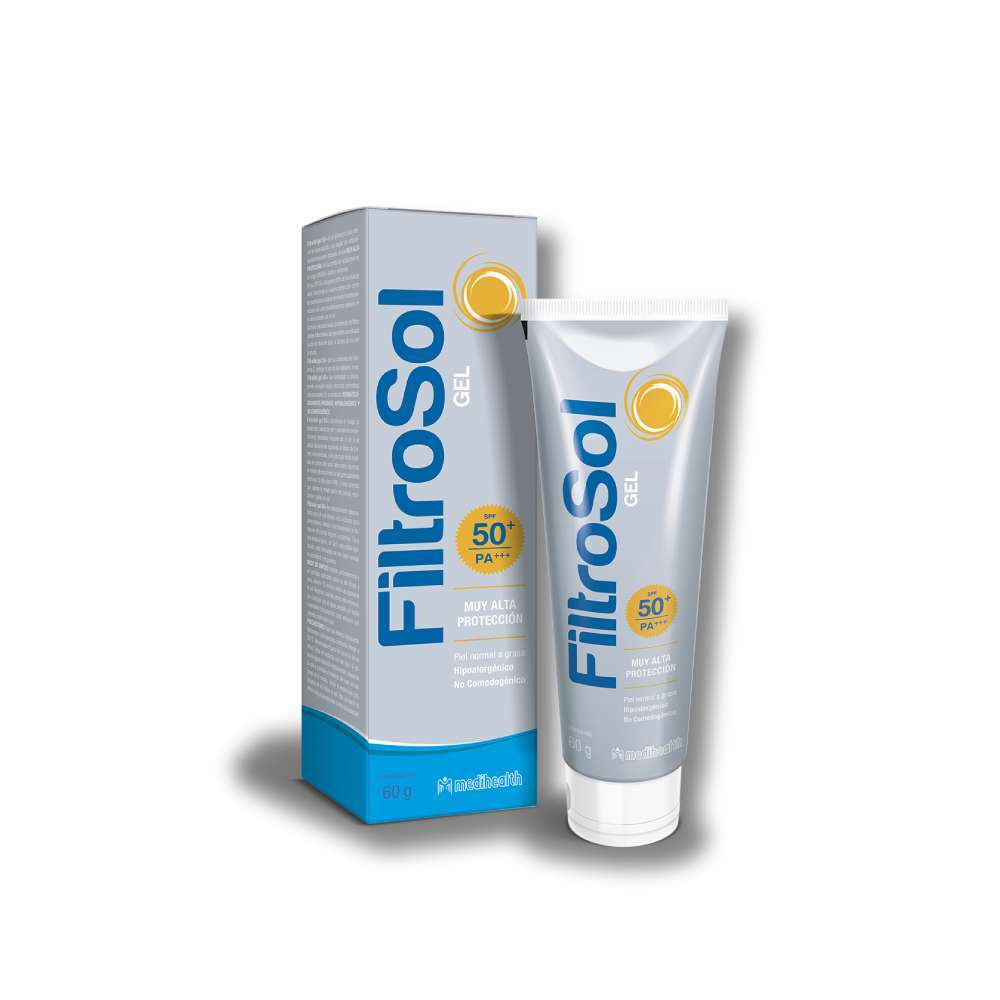 MEDIHEALTH Filtrosol Gel Spf 50+ es un protector solar de amplio espectro, libre de PABA, que protege eficazmente contra la radiación UVA y UVB. Su fórmula incluye filtros solares avanzados y vitamina E, un potente antioxidante que ayuda a reducir los efectos nocivos y acumulativos de las radiaciones ultravioletas. Ideal para una protección completa y duradera frente al sol.