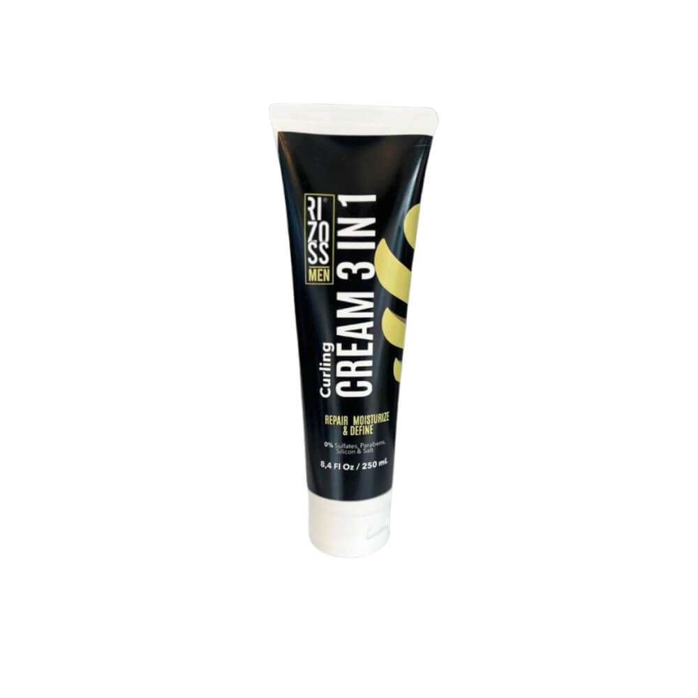 RIZOS FELICES Men Crema 3 EN 1 enriquecido con nutrientes y humectantes, este producto mantiene la hebra capilar suave y brillante, y repara incluso los cabellos más dañados. Refuerza la fibra capilar con manteca de karité y extracto de aloe vera, aportando elasticidad y vitalidad.